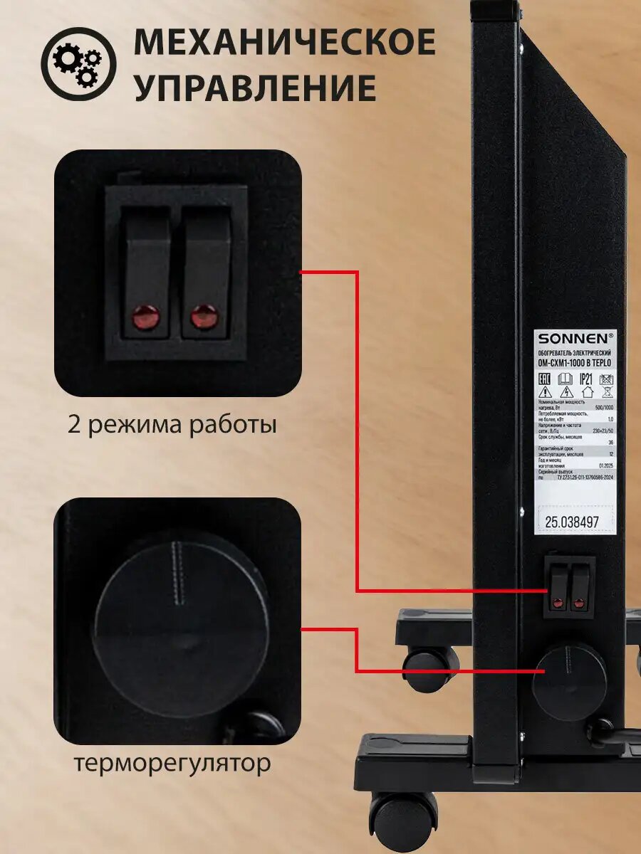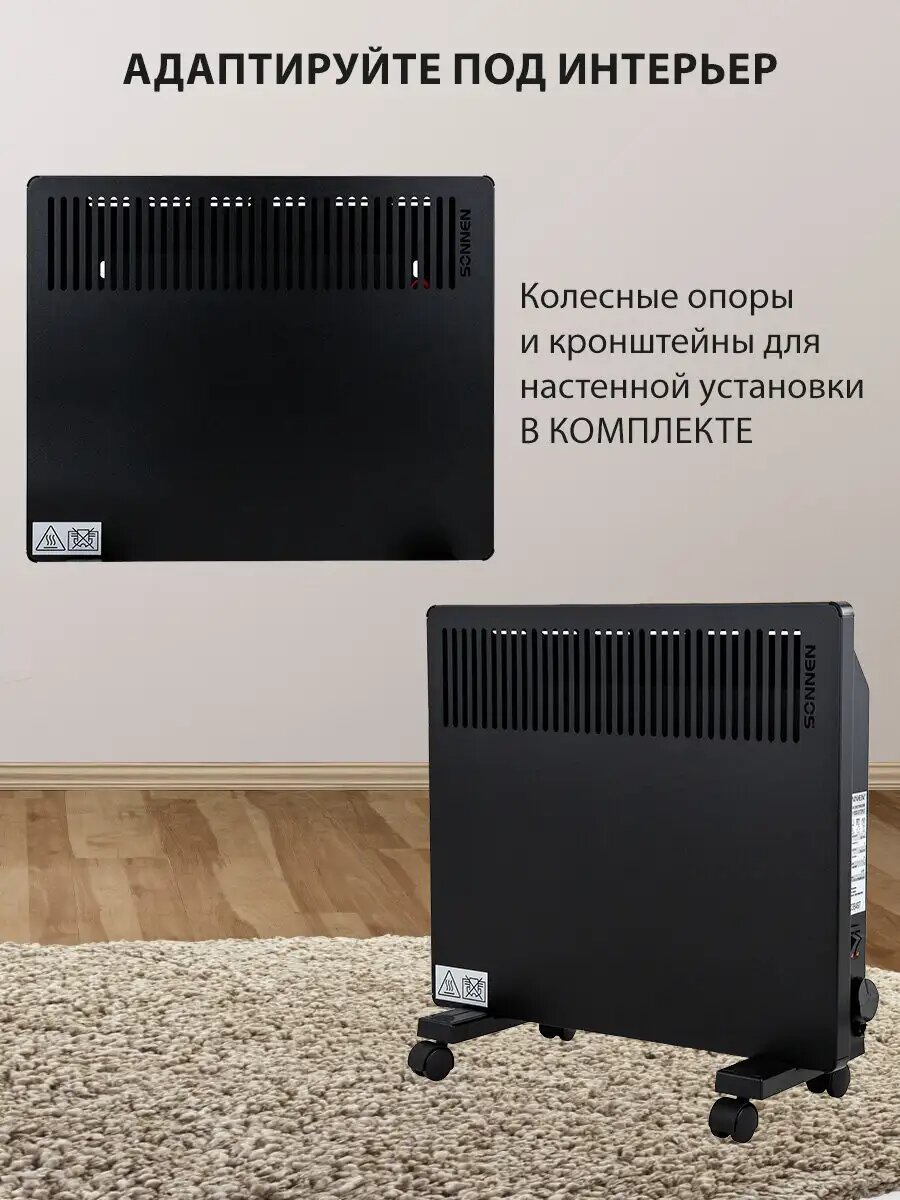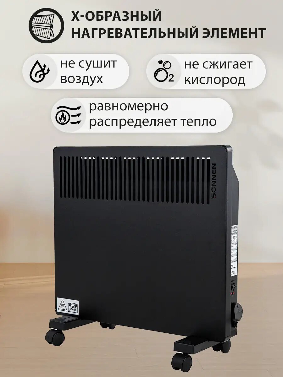 Обогреватель для дома электрический конвекторный 1000 Вт настенный напольный, Х образный нагревательный элемент, черный, Sonnen Teplo-10, 457627: сравнение цен, характеристики, фото, актуальное наличие и цены.