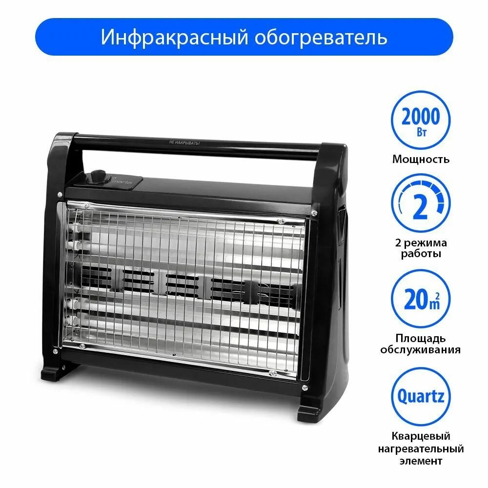 Обогреватель для дома MARTA MT-IH2582A /инфракрасный обогреватель 2000Вт/кварцевый, черный жемчуг -jua
