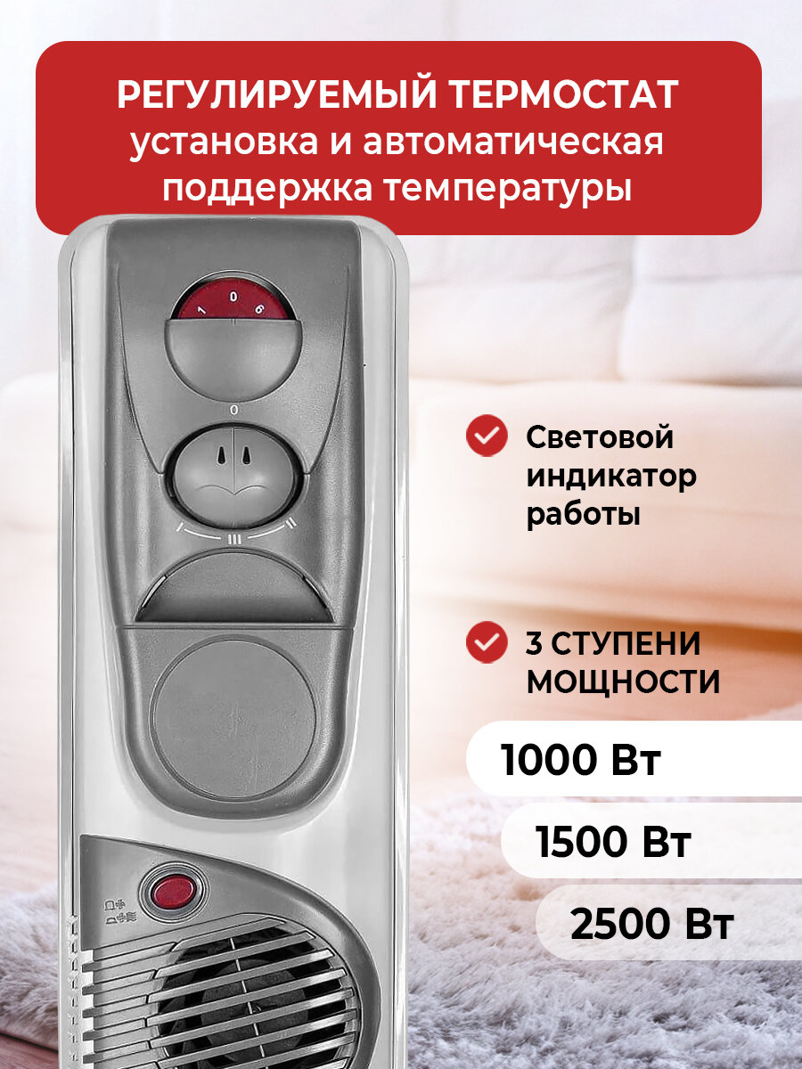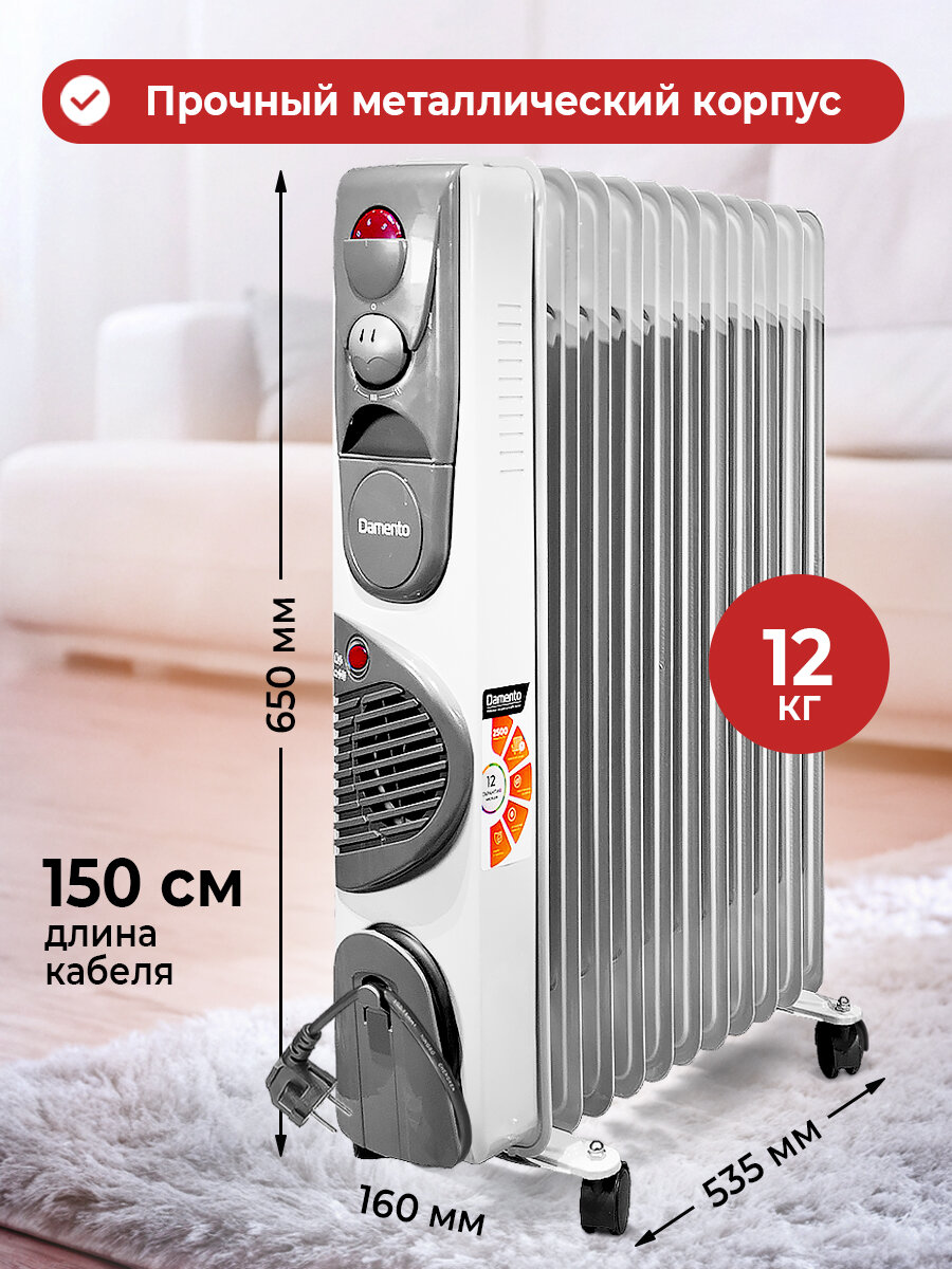 Купить Обогреватель для дома с вентилятором DAMENTO REA-11/ масляный радиатор с вентилятором 11 секций, 2500 Вт с доставкой по всей России.