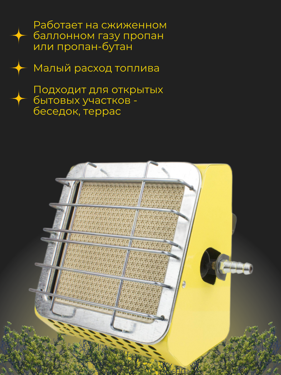 Обогреватель инфракрасный газовый Солярогаз Aeroheat - 2,5 кВт: эффективное и экономичное решение для обогрева и приготовления пищи.