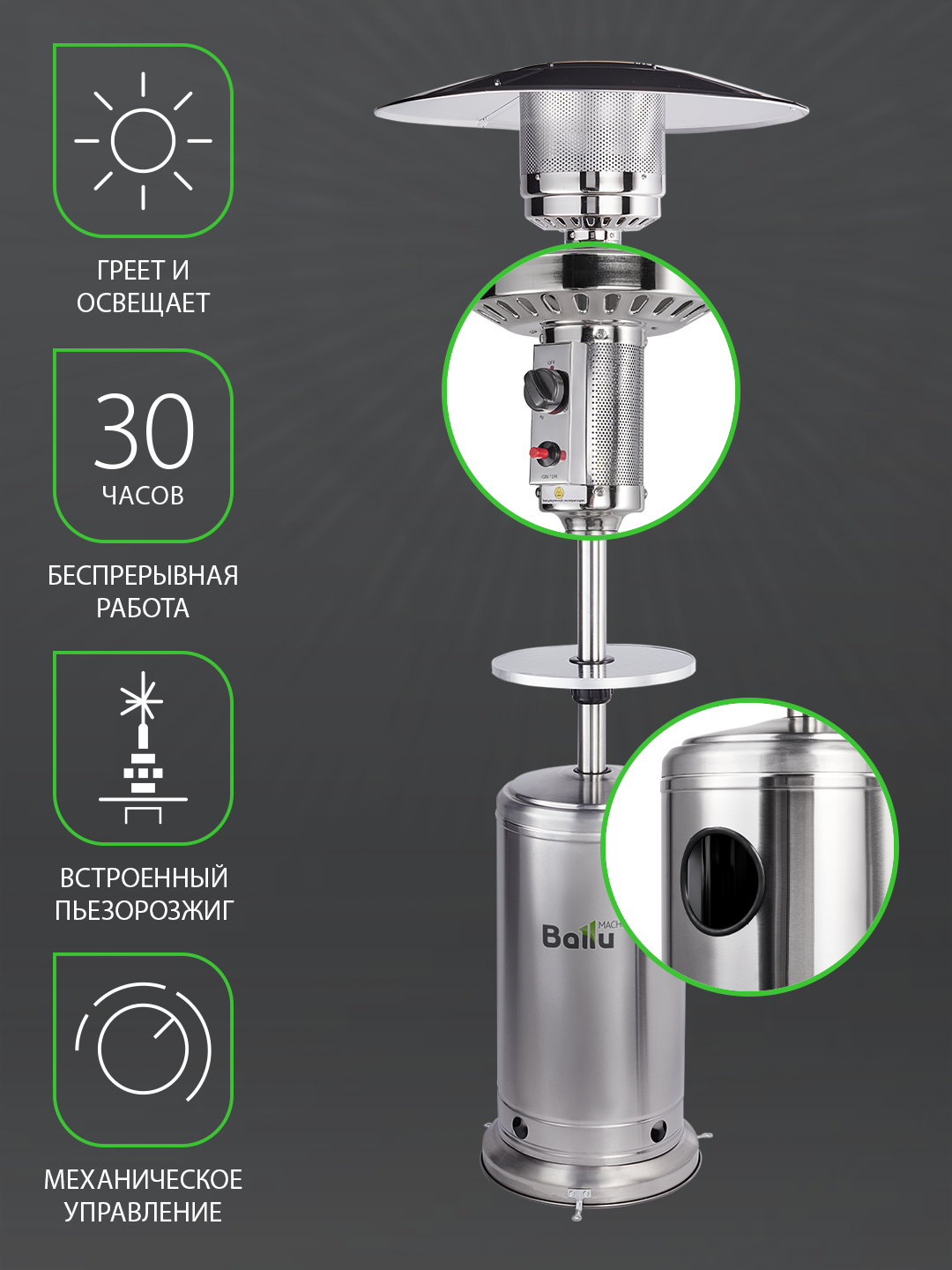 Обогреватель инфракрасный газовый грибок Ballu Vela BOGH-18, серый металлик: сравнение цен, характеристики, фото, актуальное наличие и цены.