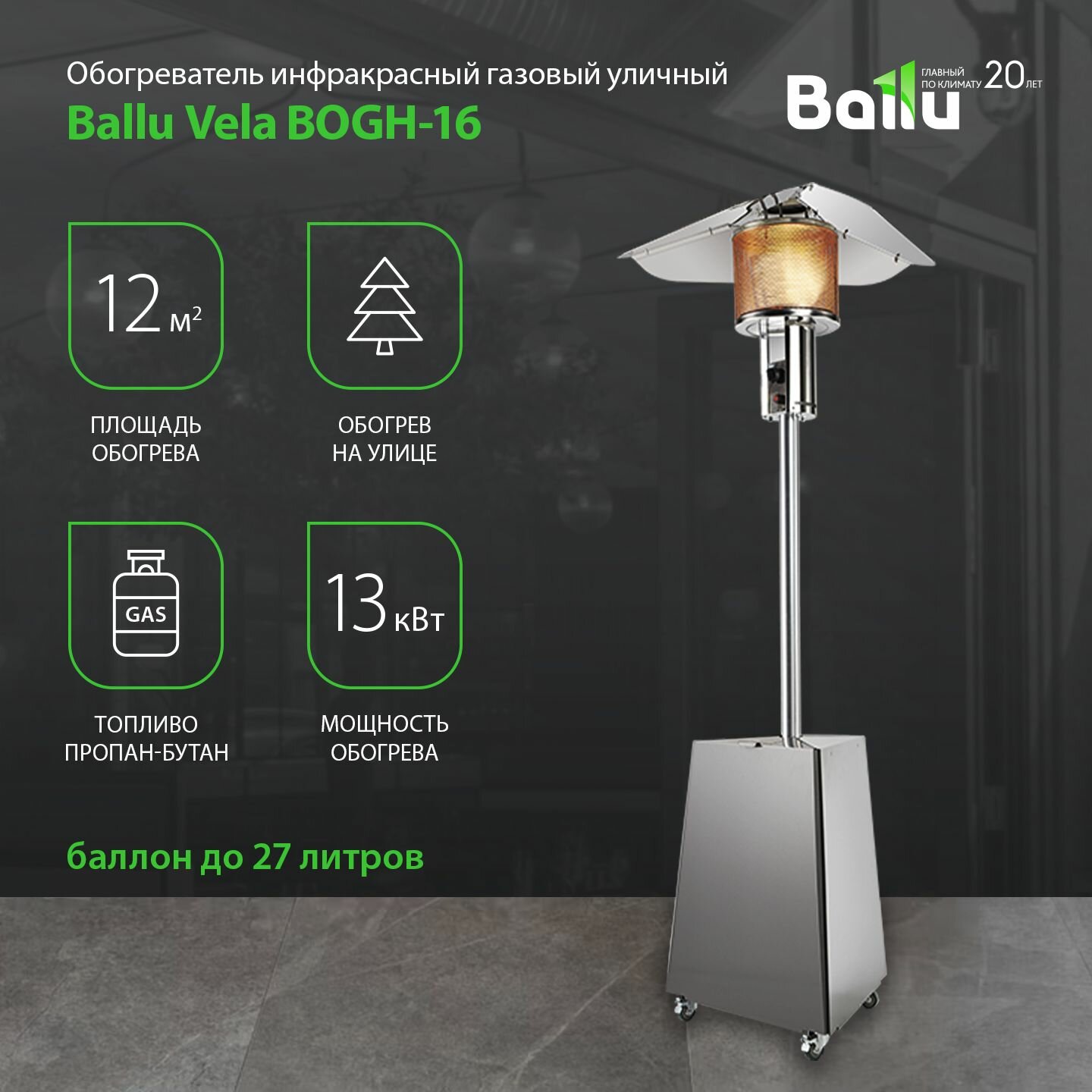 Газовые инфракрасные обогреватели Ballu серии Vela – это полностью автономные уличные обогреватели, работающие на сниженном газе пропан-бутан. Обогреватели типа «грибок» широко применяются для обогрева открытых беседок и веранд.