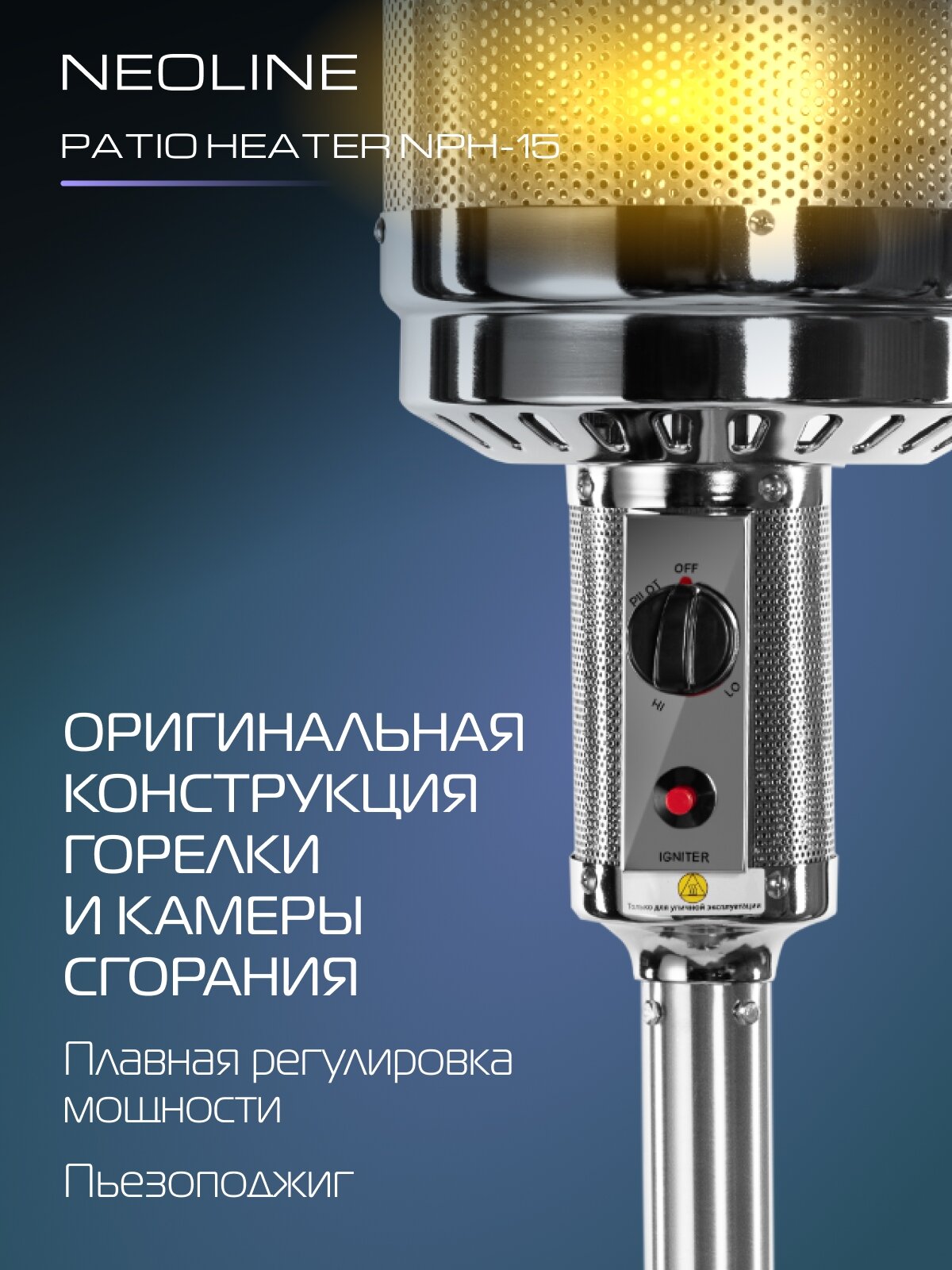 Купить Обогреватель инфракрасный газовый уличный NEOLINE PATIO HEATER NPH-15 с доставкой по всей России. Обогреватель инфракрасный газовый уличный NEOLINE PATIO HEATER NPH-15: сравнение цен, характеристики, фото, актуальное наличие и цены.