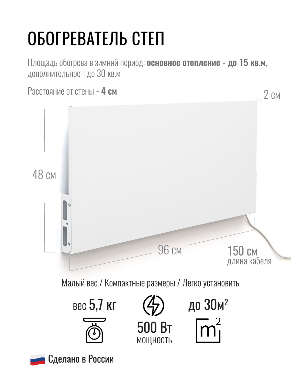 Обогреватель инфракрасный степ «DUOS 220/500», напольный, настенный, 0,5 кВт: сравнение цен, характеристики, фото, актуальное наличие и цены.