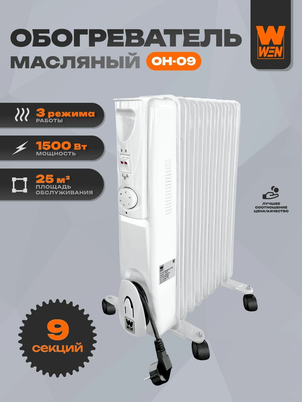 Купить Обогреватель масляный «WEN» OH-09 (9 секций) с доставкой по всей России. Обогреватель масляный «WEN» OH-09 (9 секций): сравнение цен, характеристики, фото, актуальное наличие и цены.