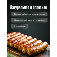 Подходит для сардельки, купатов и колбас, которые готовят жаркой (в т. ч. на гриле), варкой, запеканием или копчением. Плотная стенка говяжьей черевы хорошо держит форму, даёт ровную набивку и характерный натуральный «укус».