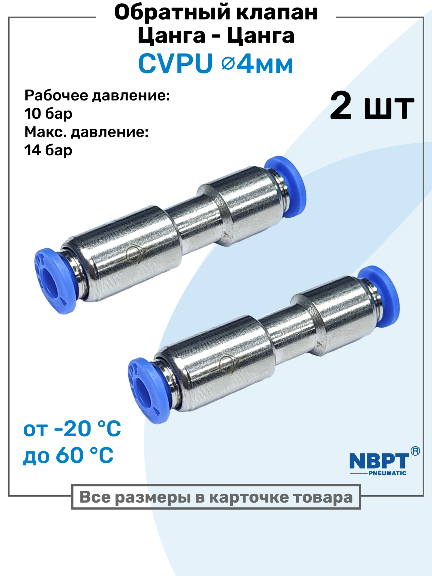 Обратный клапан латунный цанговый CVPU 4мм, Пневматический клапан NBPT, Набор 2шт: сравнение цен, характеристики, фото, актуальное наличие и цены.