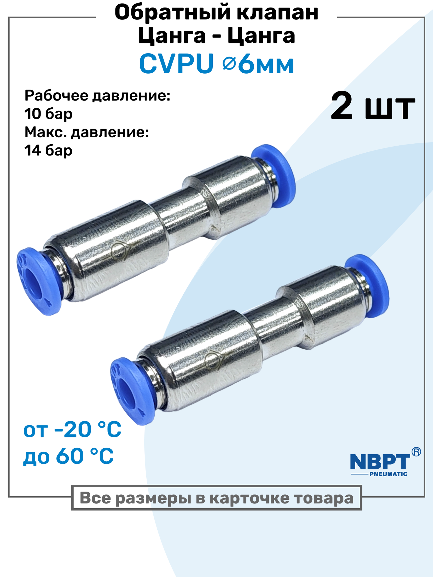 Обратный клапан латунный цанговый CVPU 6мм, Пневматический клапан NBPT, Набор 2шт: сравнение цен, характеристики, фото, актуальное наличие и цены.