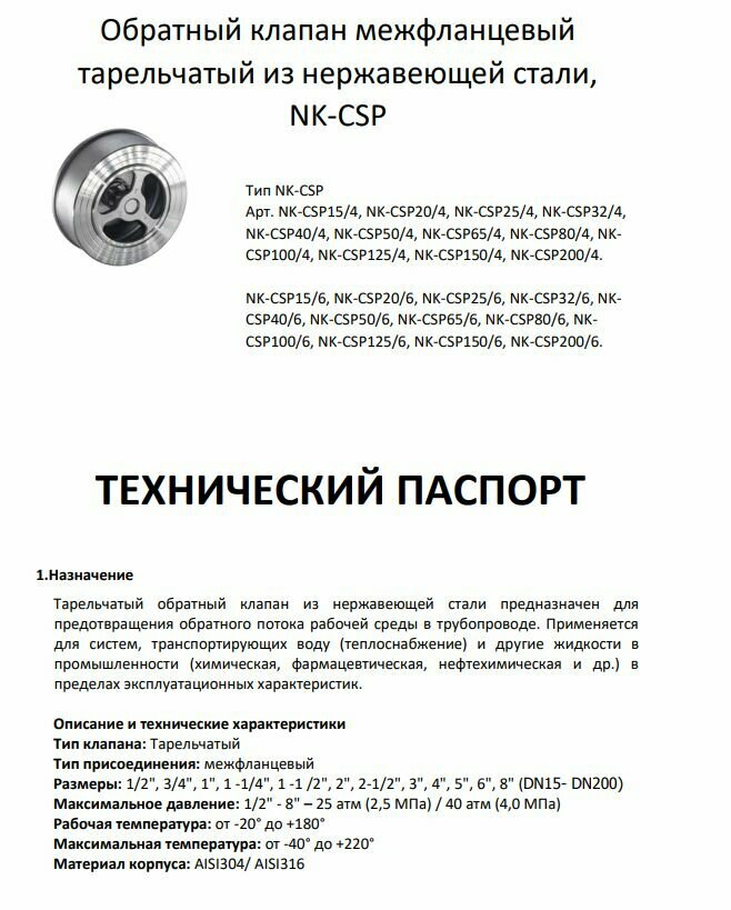 Обратный клапан межфланцевый тарельчатый нержавеющий, AISI304 DN25 (1″), (CF8), PN25: сравнение цен, характеристики, фото, актуальное наличие и цены.