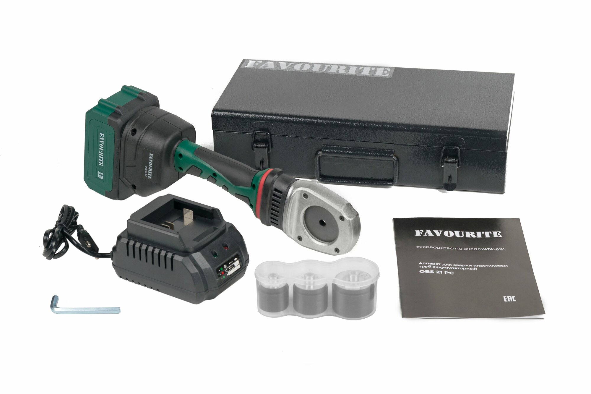 Аппарат для сварки пластиковых труб аккумуляторный Li-ion, 21 В, 4 Ач, 320 °С. В комплекте: АКБ*1 шт, ЗУ, комплект насадок 20, 25, 32 мм One battery system