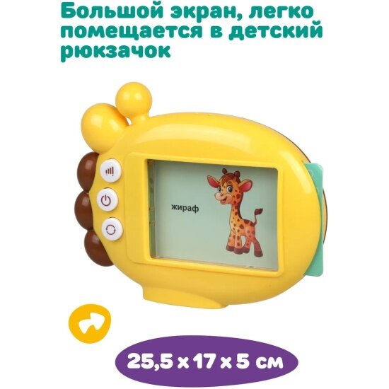 Развивающая игрушка "Игра на запоминание Жирафики" от известного бренда Жирафики представляет собой уникальный инструмент для обучения детей. Эта игрушка поможет вашему ребенку в игровой форме выучить 120 слов русского языка, а также звуки животных и транспорта. Особенностью данной игрушки является ее интерактивность. Ребенок рассматривает красочные картинки и вслед за Жирафиком произносит слова по различным темам, таким как "Транспорт", "Овощи", "Фрукты и ягоды", "Животные", "Члены семьи", "Числа", "Буквы", "Формы" и "Цвета". Игра на запоминание оснащена кардридером, который позволяет слушать, как Жирафик воспроизводит слово, название буквы русского алфавита или число. Уровень громкости регулируется, что позволяет адаптировать игру под индивидуальные потребности ребенка. Игрушка работает от 3-х батареек типа ААА на 1,5 V, которые не входят в комплект. Размер игрушки составляет 25,5х17х5 см, что делает ее удобной для использования и хранения. Игра на запоминание "Жирафики" изготовлена из полимерных материалов и картона, что гарантирует ее долговечность и безопасность для ребенка. Рекомендованный возраст для использования игрушки - 3 года и старше. Вложите в развитие своего ребенка с помощью развивающей игрушки "Игра на запоминание Жирафики" от Жирафики. интерактивная игрушка для детей; игрушки для детей; детские игрушки; развивающие игрушки для детей; мультикуб; игровой центр музыкальный; игрушки для мальчиков и девочек 1 и 2 года; бизиборд; развивающий центр; развивающий столик; игровой центр; игровой столик