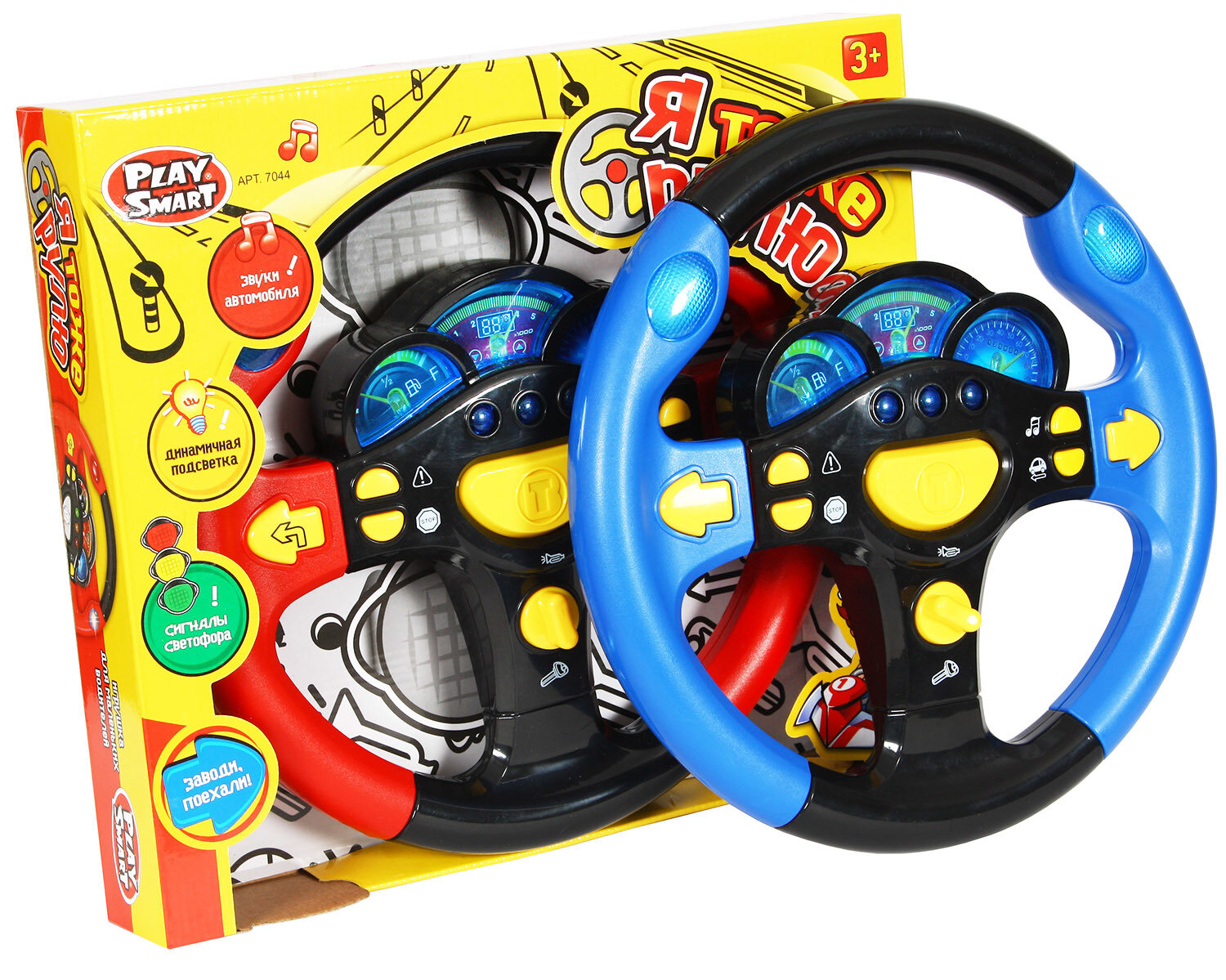 Описание: Руль с кнопками. Они легко нажимаются, причем каждая отвечает за собственный звуковой сигнал. У этой игрушки есть собственная песенка, руль издает звуки автомобиля, имеет динамичную подсветку.