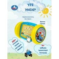 Обучающий трёхсторонний планшет-каталка «Синий Трактор» ТМ «УМка» станет прекрасным подарком для маленьких поклонников мультсериала про весёлый трактор: - 15 песен из м/ф (фрагменты): «Алфавит», «Му-му-му», «Бе-бе-бе», «Р-р-р», «Иа-иа», «Еду на машине», «Экскаватор», «Лево-право», «Что ты делал, Синий Трактор?», «Считалочка», «Разноцветные машинки», «Ракета», «Далеко и близко», «Мусоровоз», «Едет трактор» - 70 стихотворений - 3 загадки про героев м/Ф - 3 обучающих игры - учим цифры и цвета - переключатель «Вкл./Выкл.» - регулировка громкости