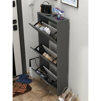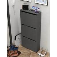 Обувница закрытая высокая узкая идеально подойдет для небольших прихожих, где каждый сантиметр имеет значение. Цвет Антрацит находится в более темной части серой палитры. Он является доминирующим и имеет металлический блеск, который придает ему вид черный, но одновременно переходящего в серый. Помимо создания контраста, этот строгий нейтральный декор отлично смотрится в сочетании с текстурой дерева и репродукциями других материалов. Этот компактный и функциональный предмет мебели поможет организовать хранение обуви и других мелочей, освободив пространство и делая прихожую более уютной. Высокое исполнение обеспечивает большой объем хранения, а закрытая конструкция защитит обувь от пыли и света. Помимо своей практичности, обувница представляет собой стильное дополнение к интерьеру, благодаря своему современному дизайну. Задняя часть стенки обувницы отсутствует. Галошница поставляется в разобранном виде. Хорошо упаковано в гофротару вместе с необходимой фурнитурой для сборки и подробной инструкцией.