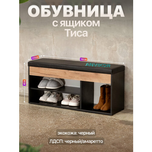 Купить Обувница банкетка в прихожую ЛДСП с мягким сиденьем и ящиком Тиса черный/амаретто с доставкой по всей России. Обувница банкетка в прихожую ЛДСП с мягким сиденьем и ящиком Тиса черный/амаретто: сравнение цен, характеристики, фото, актуальное наличие и цены.