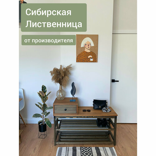 Обувница для прихожей, деревянная, с сиденьем, банкетка из массива Лиственницы 105х55х40, цвет черный / Орех: сравнение цен, характеристики, фото, актуальное наличие и цены.