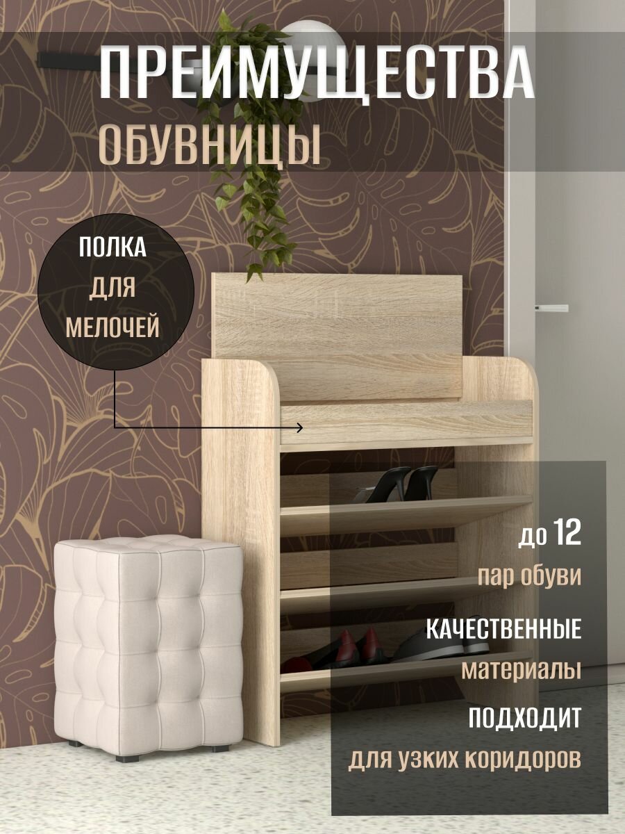 Ищете стильную и функциональную обувницу для вашего коридора или прихожей? Тогда обратите внимание на обувницу от мебельной фабрики Династия. Этот предмет мебели выполнен из ЛДСП и имеет размеры 70х30х80 см, что делает его идеальным выбором для небольших помещений.