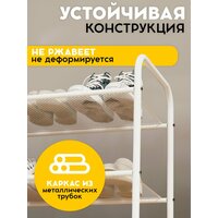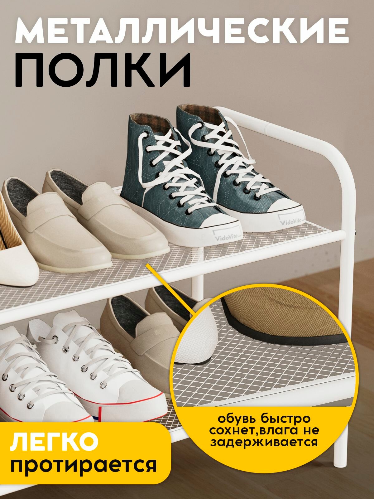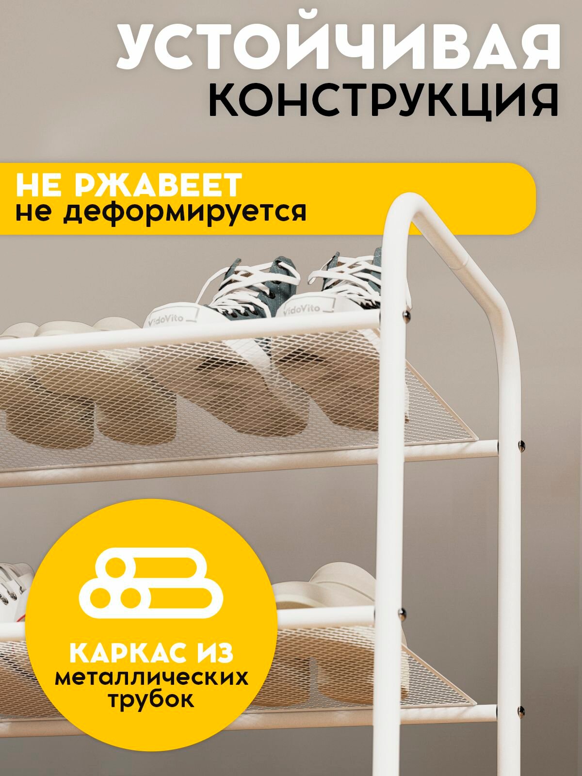 Данная полочка для обуви не только функциональна, но и легко очищается. Вам не придется беспокоиться о загрязнениях – просто протрите её мягкой тряпкой, и она снова будет выглядеть как новая. Эта обувница металлическая белая станет не только практичным решением для вашей обуви, но и стильным элементом вашего интерьера.