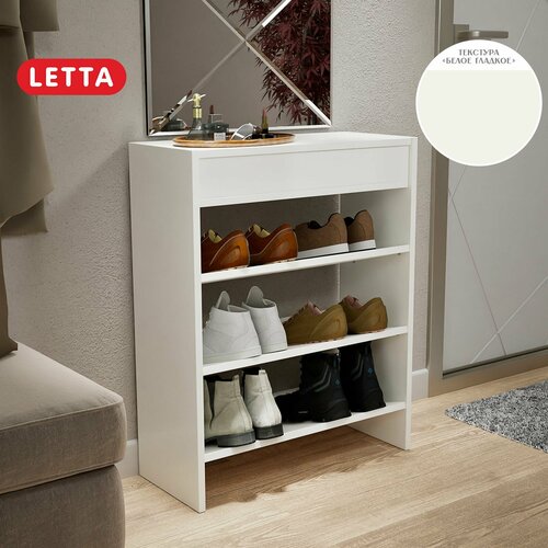 Обувница LETTA Мальта, белая, ЛДСП, ящик для хранения, вместимость 9 пар, 60 см x 26 см x 75 см: сравнение цен, характеристики, фото, актуальное наличие и цены.