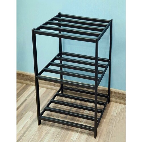 Обувница металлическая каркасная из профильной трубы черная. Этажерка полка для обуви.