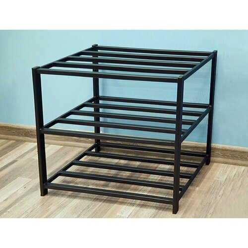 Обувница металлическая каркасная из профильной трубы черная. Этажерка полка для обуви.