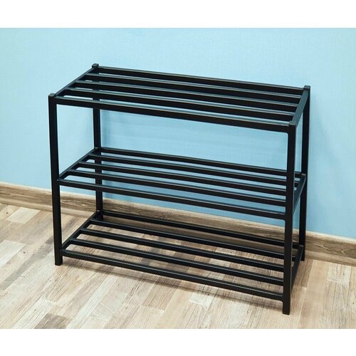 Обувница металлическая каркасная из профильной трубы черная. Этажерка полка для обуви.