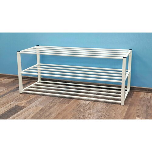 Обувница металлическая каркасная из профильной трубы белая. Этажерка полка для обуви.