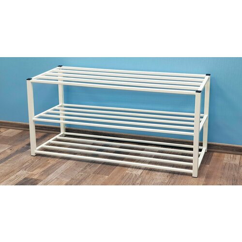 Обувница металлическая каркасная из профильной трубы белая. Этажерка полка для обуви.