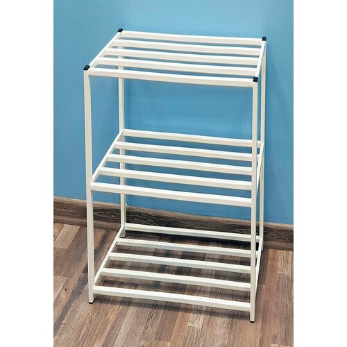 Обувница металлическая каркасная из профильной трубы белая. Этажерка полка для обуви.