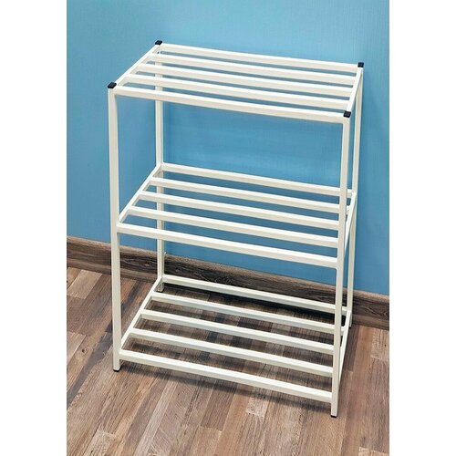 Обувница металлическая каркасная из профильной трубы белая. Этажерка полка для обуви.