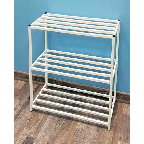 Обувница металлическая каркасная из профильной трубы белая. Этажерка полка для обуви.