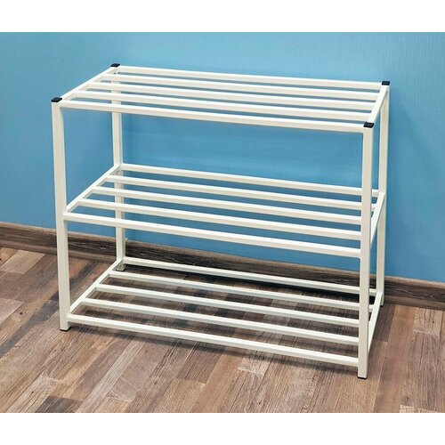 Обувница металлическая каркасная из профильной трубы белая. Этажерка полка для обуви.