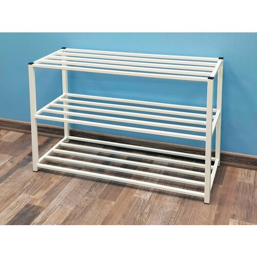 Обувница металлическая каркасная из профильной трубы белая. Этажерка полка для обуви.