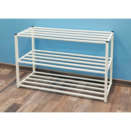 Обувница металлическая каркасная из профильной трубы белая. Этажерка полка для обуви.