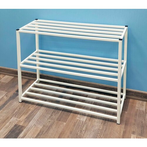 Обувница металлическая каркасная из профильной трубы белая. Этажерка полка для обуви.