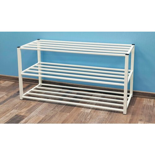 Обувница металлическая каркасная из профильной трубы белая. Этажерка полка для обуви.