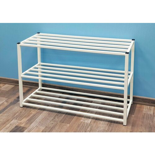 Обувница металлическая каркасная из профильной трубы белая. Этажерка полка для обуви.