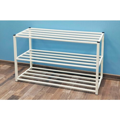 Обувница металлическая каркасная из профильной трубы белая. Этажерка полка для обуви.