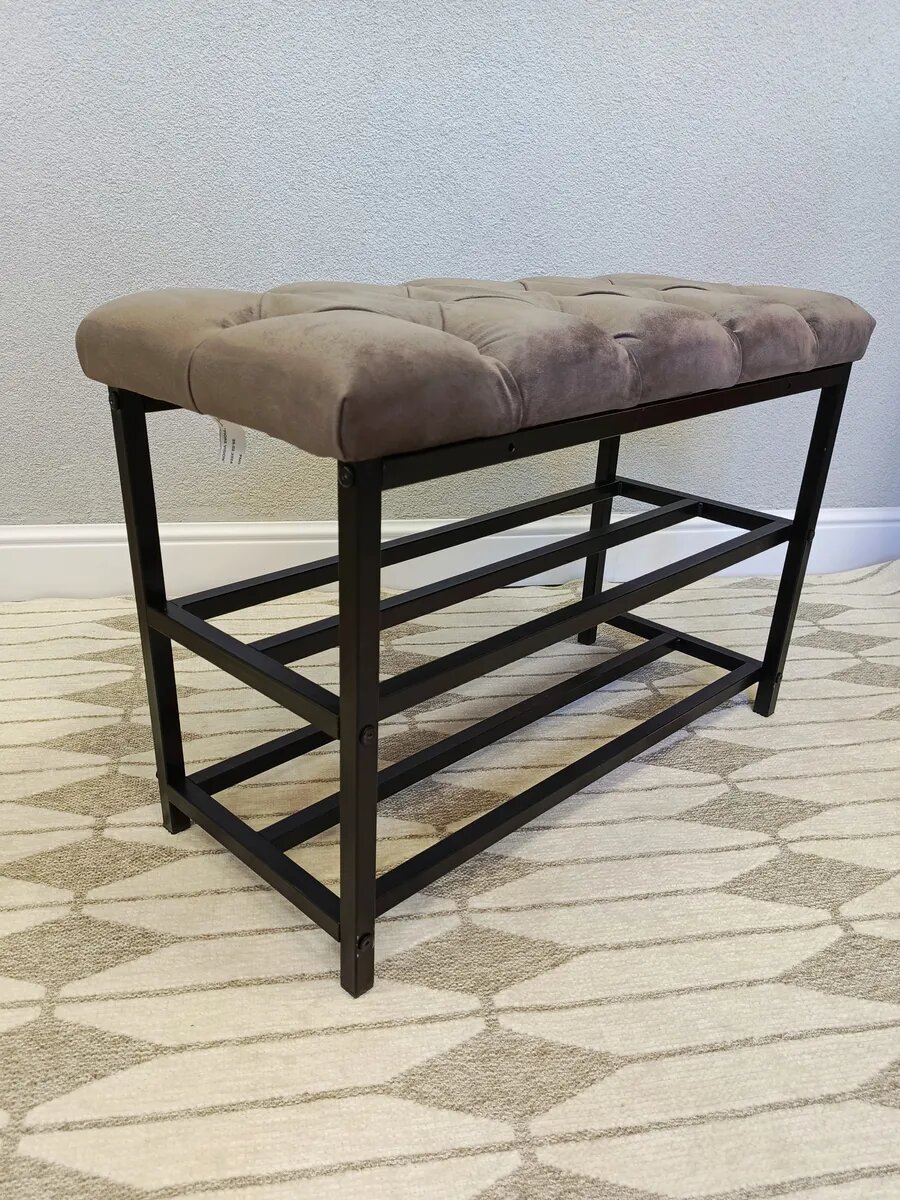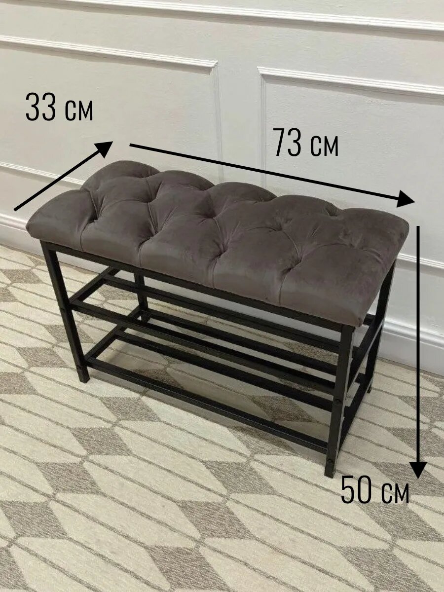 Открытая обувница на металлическом каркасе от бренда EXPERTMEBEL станет настоящим дизайнерским акцентом в Вашей прихожей. Наша тумба для обуви – это практичный предмет интерьера любой квартиры, дома и дачи. Мягкое сиденье-лавочка создаст уют в корридоре и дополнительное место для отдыха, а на полках удобно расположить до 6 пар. Сочетается со всеми современными стилями, включая сканди, лофт loft, минимализм и клаccический. Для сидения мы выбрали мебельную ткань велюр с бархатной, приятной на ощупь поверхностью. Ткань легко чистится и прочнее, чем экокожа. Несминаемый поролон ппу придаст мягкости и удобства при сидении. Практичность в уходе – важное преимущество для тех, у кого есть маленькие дети и питомцы. Будет удобен для сна вашего домашнего животного. Вельвет легко очищается от пыли и загрязнений, шерсти домашних животных. Скамейка укомплектована заглушками, которые обеспечивают защиту напольных покрытий от повреждений. Этажерка имеет прочный металлический каркас, который легко моется от загрязнений и покрыт специальной краской от ржавчины. Мягкий пуфик отлично справляется с нагрузками до 130 кг и может использоваться для сидения у дивана, кресла и кровати, кухне или в гостиной. Можно использовать как офисную мебель, в парикмахерской, салоне красоты или магазине. Будет практичен для бизнеса в коммерческих помещениях: для примерочной, в раздевалку школы, спортивных секций и для офиса, будет функционален для номеров в гостиницу и отелей. Такая гардеробная система будет уместна в кафе и ресторанах во входной зоне. В доме обувная скамья станет незаменим элементом для балкона, лоджии, веранды и террасы. Сборка обувницы очень простая. Инструкция по сборке вложена в комплект. В комплект входит: - металлический каркас - сидение - крепеж Материал обивки: Велюр. Длина: 73 см; Ширина: 33 см; Высота до сидушки: 43.4 см; Высота общая: 50 см; Расстояние между 1-й и 2-й полкой: 16.2 см; Расстояние между 2-й полкой и сидушкой: 17.5 см; Основание - Металлическая труба - 2 см; Вес изделия – 8 кг.