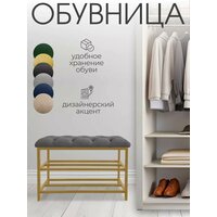 Обувница EXPERTMEBEL «Мальта», серый, велюр, 73х33х50см, золотой каркас