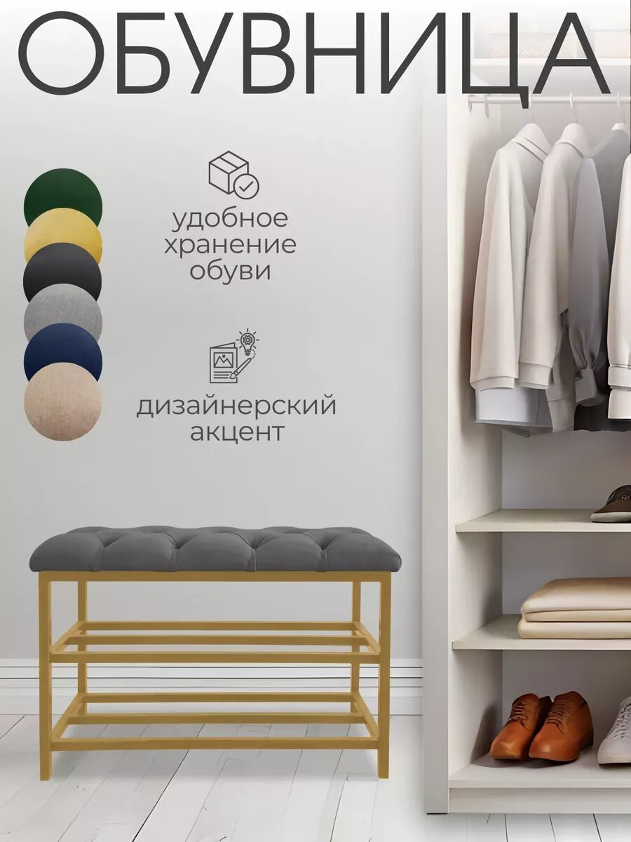Обувница EXPERTMEBEL «Мальта», серый, велюр, 73х33х50см, золотой каркас: сравнение цен, характеристики, фото, актуальное наличие и цены.