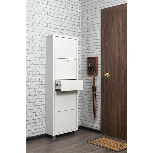 Купить Обувница Ironnori Люкс Плюс, фасад ЛДСП, 4 секции плюс ящик для мелочей, цвет белый Шагрень. с доставкой по всей России.