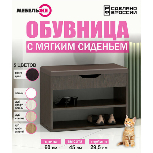 Обувница «Лаки 1» (тумба для обуви «Лаки 1») Венге Цаво/Экокожа Коричневая: сравнение цен, характеристики, фото, актуальное наличие и цены.