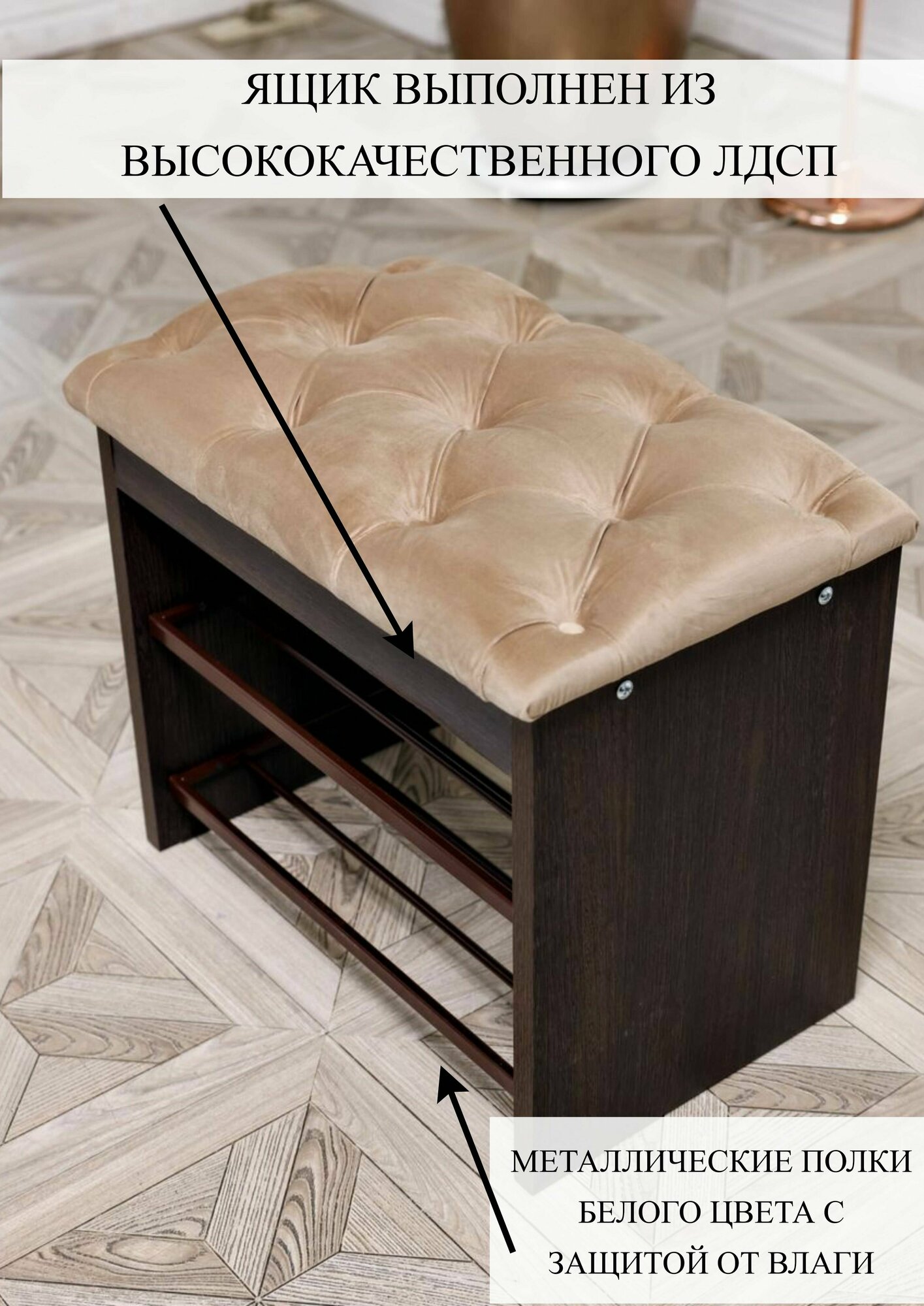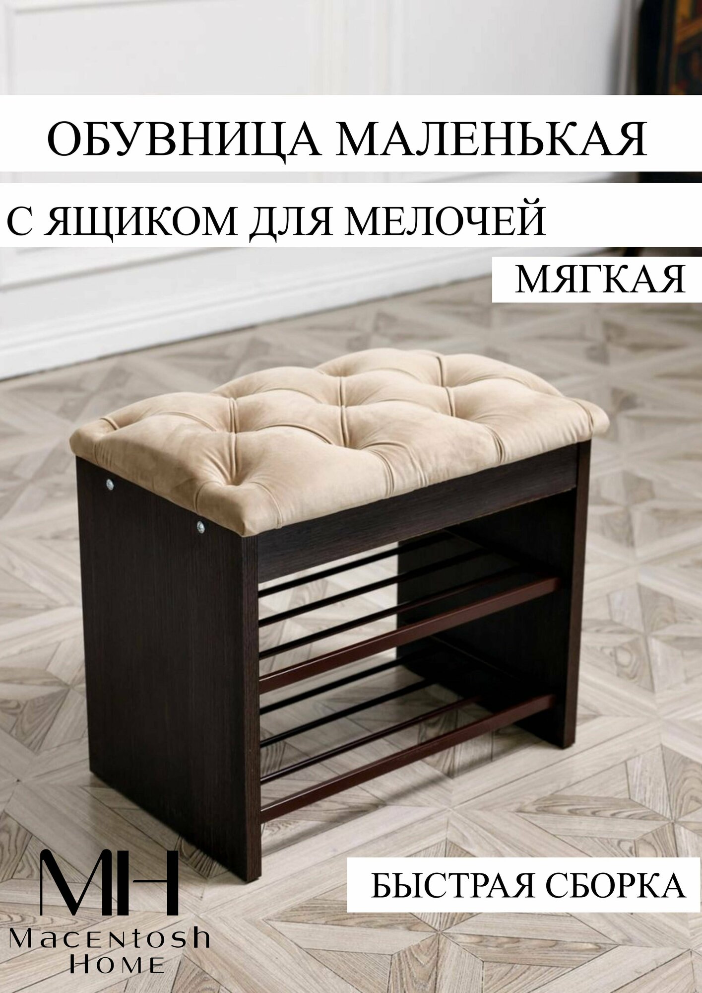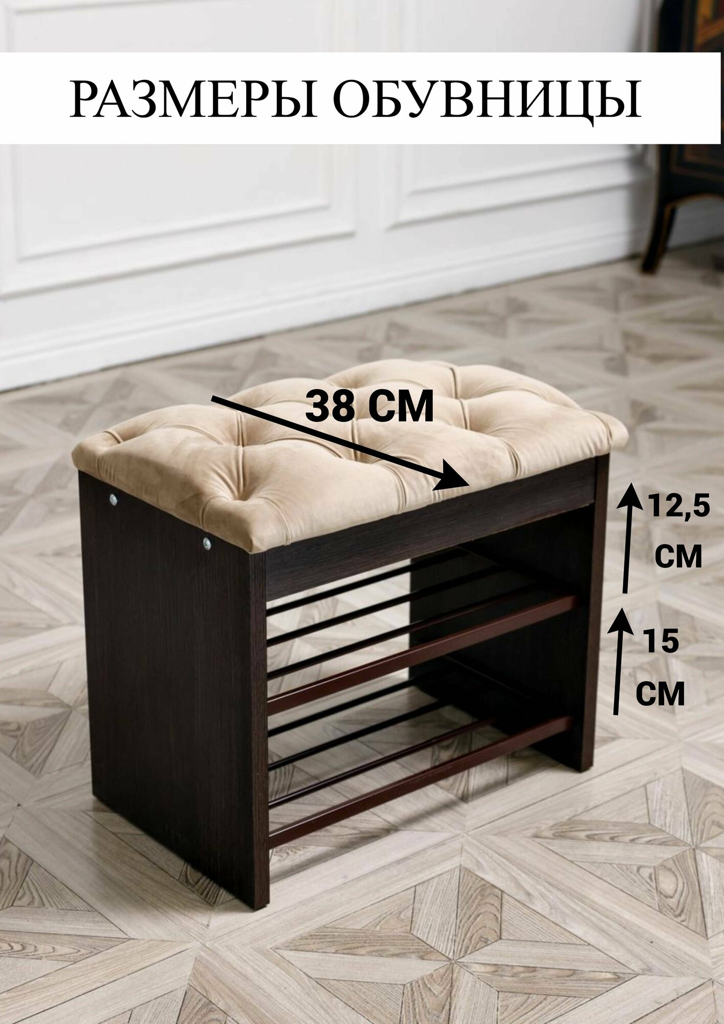 Если Вы в поисках маленькой, качественной и очень стильной обувницы, то мы рады представить для Вас новинку 2023-2024г. обувницу стеганую из высококачественного ЛДСП. Обувница, этажерка, тумбочка для обуви, пуф, скамья или галошница - отличный вариант для хранения обуви и повседневных вещей. Компактные форма и размеры позволяют поставить обувной шкаф, а точнее обувницу, не только в прихожей, но и в очень узком коридоре и на балконе, а также в гардеробной комнате и холле. Полка для обуви это незаменимый предмет интерьера в квартире, в бане или на даче, который можно использовать в качестве банкетки, комода, пуфика с ящиком для хранения в коридоре мелочей, документов, средств для ухода за обувью. Мягкое и прочное сиденье у полки для обуви обеспечит вам комфортное переобувание в прихожей. Наши изделия подходят для интерьеров стиле лофт, классическом, современном, модерн. Полочка для обуви белая не пластиковая (слоновая кость, молокая, светло-серая, белая). Так же у нас вы можете приобрести в комплект и другую деревянную мебель в прихожую: зеркало настенное, обувница в прихожую под обувь (для обуви подставка) без мягкого сиденья, напольная вешалка, тумба комод мини шкаф в гардеробную комнату. Станет отличным подарком маме, папе, бабушке, дедушке, свекрови, другу и подруге на новоселье, день рождения, или без повода порадовать дорогих людей. Обувница стеганая с мягким сиденьем имеет следующие размеры: длина 595 мм, высота 520 мм, глубина 380 мм. Обувница с ящиком приходит в разобранном виде, но мы предусмотрели все, чтобы вы могли с легкостью ее собрать. Сам ящик приедет к Вам уже собранным, останется дело за малым - собрать ножки. Полки металлические покрыты антикоррозионной покраской, что защищает полки от влаги.