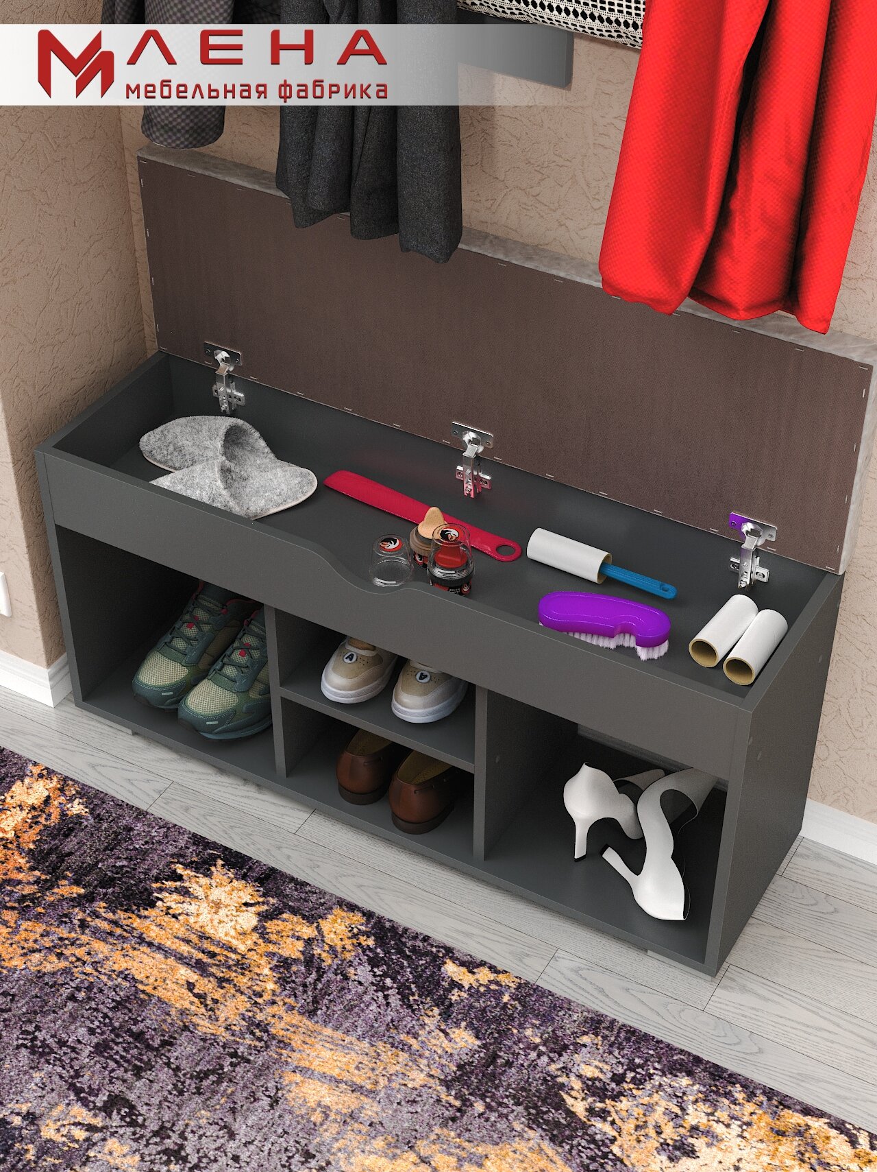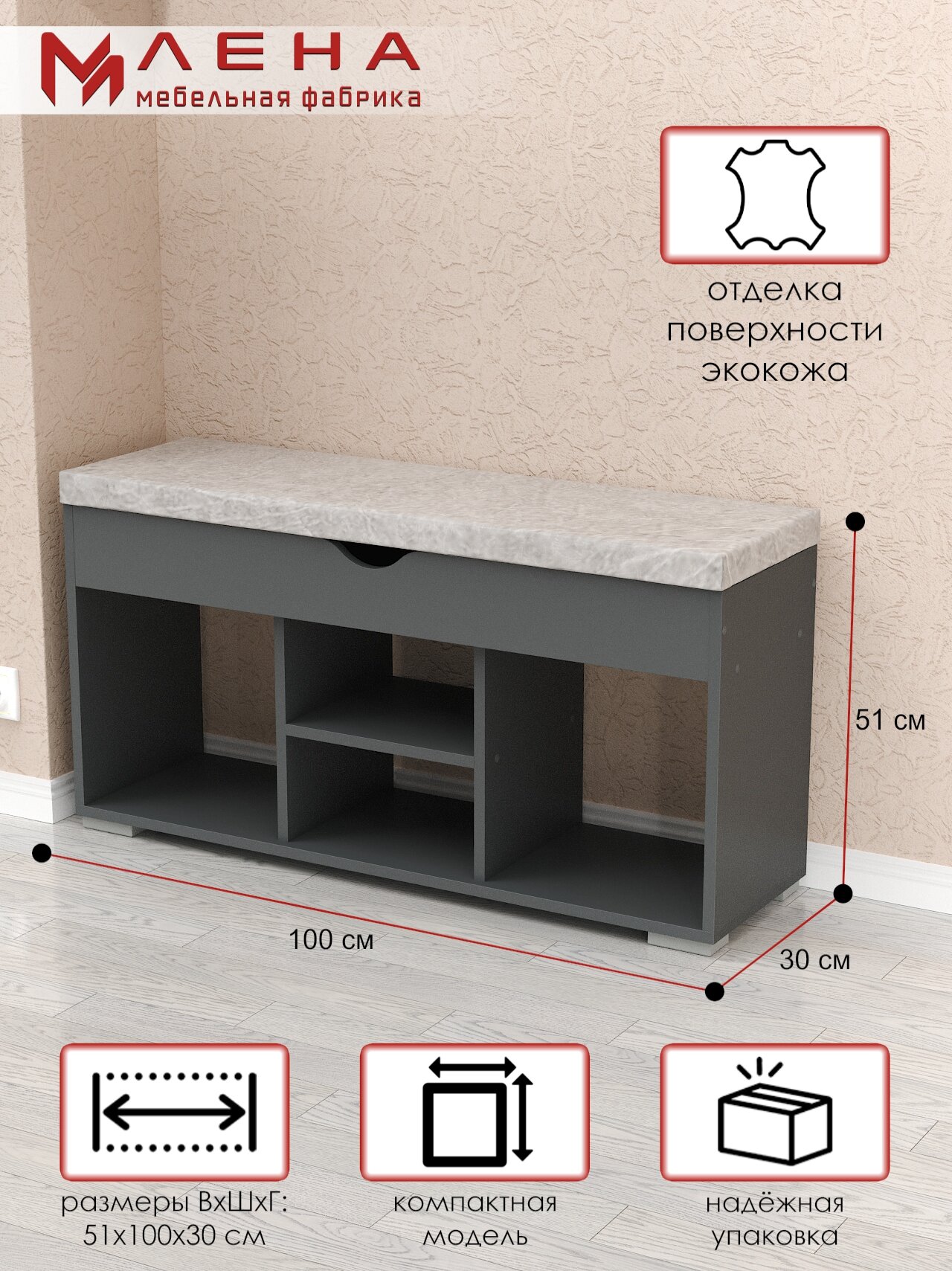 Обувница Мебельная Фабрика Лена № 19, искусственная кожа, цвет антрацит, с сиденьем: сравнение цен, характеристики, фото, актуальное наличие и цены.