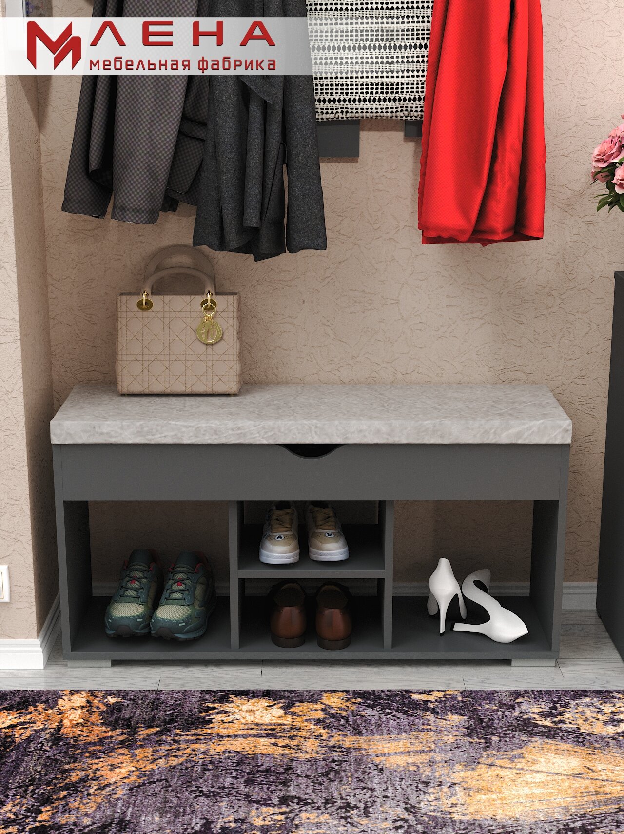Купить Обувница Мебельная Фабрика Лена № 19, искусственная кожа, цвет антрацит, с сиденьем с доставкой по всей России.