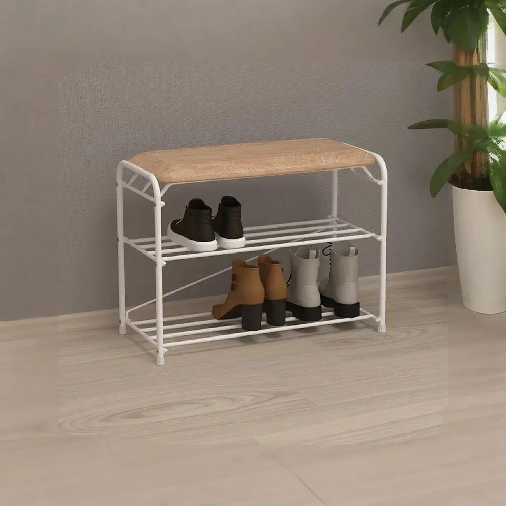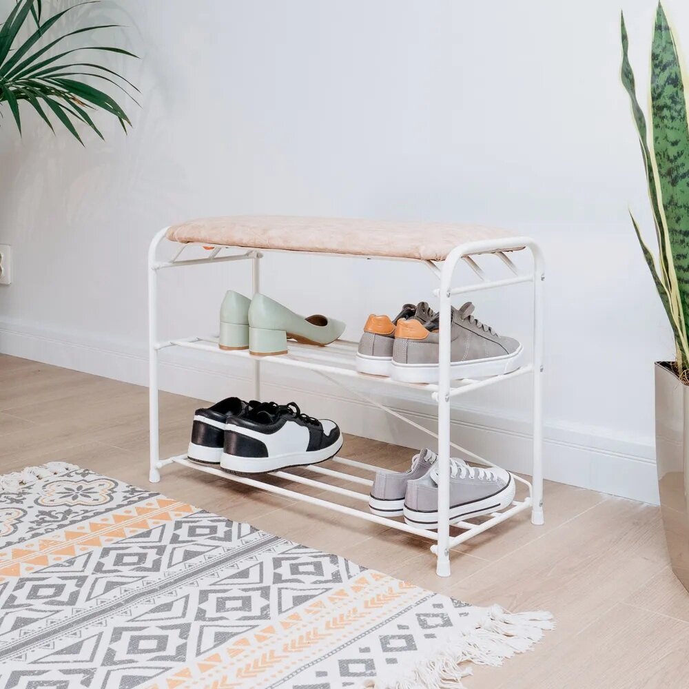 Купить Обувница металлическая 2 полки Альфа 23 белая с мягким сидением с доставкой по всей России.
