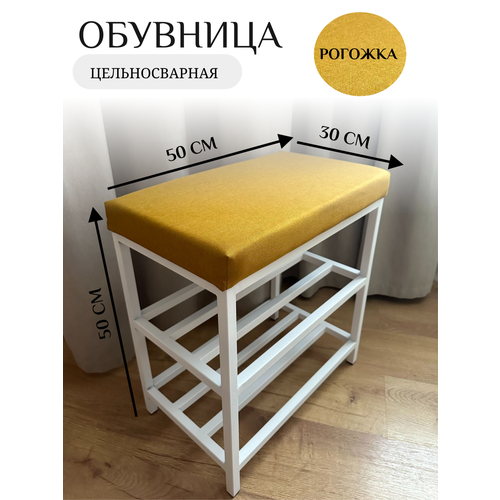 Привет! Представляем тебе нашу новую обувницу с мягким сиденьем - идеальное решение для твоей прихожей или любого другого помещения. Данная мебель является функциональным и стильным аксессуаром, который поможет организовать хранение обуви и других мелочей. Наша обувница идеально впишется в твою кухню, коридор, ванную комнату или гостиную. Ее узкий и компактный дизайн позволяет установить ее даже в самых маленьких комнатах. Обувница выполнена из металлического корпуса, что гарантирует ее прочность и долговечность. Также обрати внимание на наличие двух полок - идеальных для хранения обуви, сумок или других вещей, а мягкое сиденье позволяет комфортно обуваться или одеваться. Расстояние от пола до нижней полки – 5 см, расстояние между полочками для обуви – 18 см. Наша обувница - это не только практичное решение для хранения вещей, но и стильный аксессуар в стиле лофт. Ее минималистичный и современный дизайн и черная отделка добавят элегантности и изысканности в любое помещение. Так что не упусти возможность приобрести эту обувницу с дополнительными функциями. Она идеально подойдет для любого помещения - дома, офиса, дачи или сада. Закажи обувницу сегодня и получи удобство и стиль в каждый уголок твоего дома!