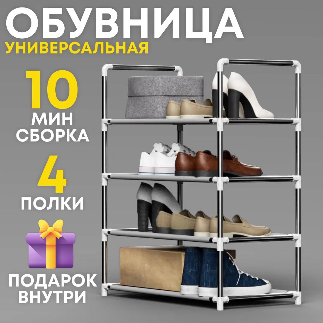 Купить Обувница металлическая, Полка этажерка в прихожую, гардеробную, 4 яруса цвет белый с доставкой по всей России. Обувница металлическая, Полка этажерка в прихожую, гардеробную, 4 яруса цвет белый: сравнение цен, характеристики, фото, актуальное наличие и цены.