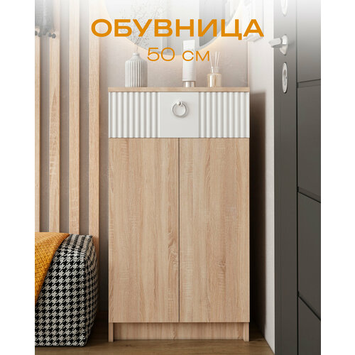 Элегантная и функциональная обувница – идеальное решение для организации пространства в вашей прихожей, кладовой или коридоре. Компактные габариты (ширина 50 см, высота 90 см, глубина 35 см) позволяют разместить её даже в небольшом помещении, не загромождая пространство. Тумбочка оснащена вместительным ящиком полного выдвижения (внутренние размеры: ширина 41 см, глубина 30 см, высота 10 см), идеально подходящим для хранения мелочей, ключей или средств по уходу за обувью. Надежные петли Boyard гарантируют долгий срок службы, а металлическая ручка кольцо добавляет изысканности. Дверцы, открывающиеся от нажатия, обеспечивают удобство и современный внешний вид. Внутри обувницы расположены две съемные полки с возможностью регулировки по высоте, позволяющие оптимально разместить обувь разных размеров. Тумба представлена в двух цветовых решениях: благородный кашемир и стильное сочетание дуба сономы с белым фасадом. 3D-фрезеровка на ящике придает изделию особый шарм. Поставляется в разобранном виде, в комплекте подробная схема сборки. Обувница закрытая - это функциональное и стильное решение для хранения обуви в порядке. Она представляет собой специальную мебель с закрытыми полками или ящиками, где можно удобно разместить обувь. Такая обувница не только поможет вам сохранить порядок в прихожей, но и защитит обувь от пыли и загрязнений. Благодаря закрытой конструкции она также поможет создать уют и порядок в интерьере помещения. Обувница закрытая - это практичное и стильное решение для хранения обуви в доме.